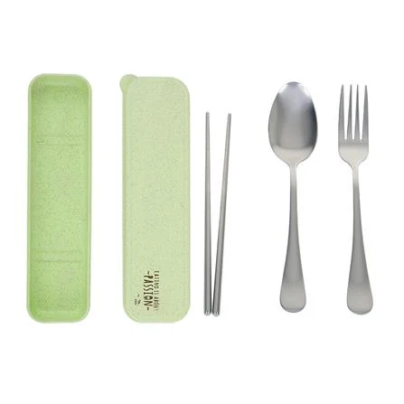 ชุดช้อนส้อมตะเกียบ+กล่องพกพา KECH PASSION สีเขียว