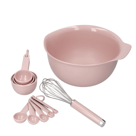 - ประกอบด้วยชามผสม ตะกร้อมือ ถ้วยตวง 4 ใบ และช้อนตวง 5 อัน